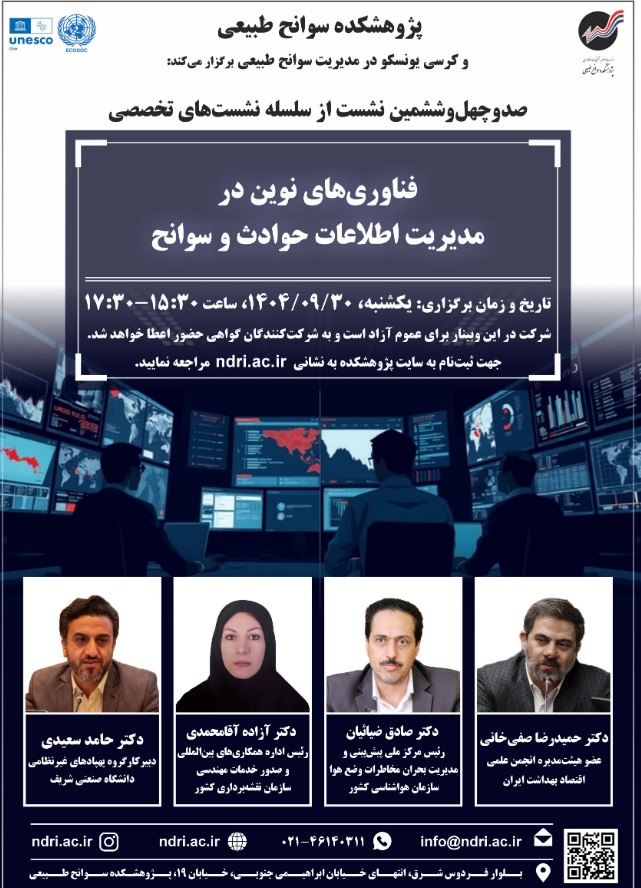 نشست فن آوری نوین در مدیریت اطلاعات حوادث وسوانح ۳۰ آذر ۱۴۰۴ | ۱۲:۰۴ کد : ۵۷۱۴۹ اطلاعیه ارسال به دیگران نام شما ایمیل شما ایمیل دریافتکننده ارسال انصراف تعداد بازدید:۱۵۱۳ دعوتنامه نشست فن آوری نوین در مدیریت اطلاعات حوادث وسوانح