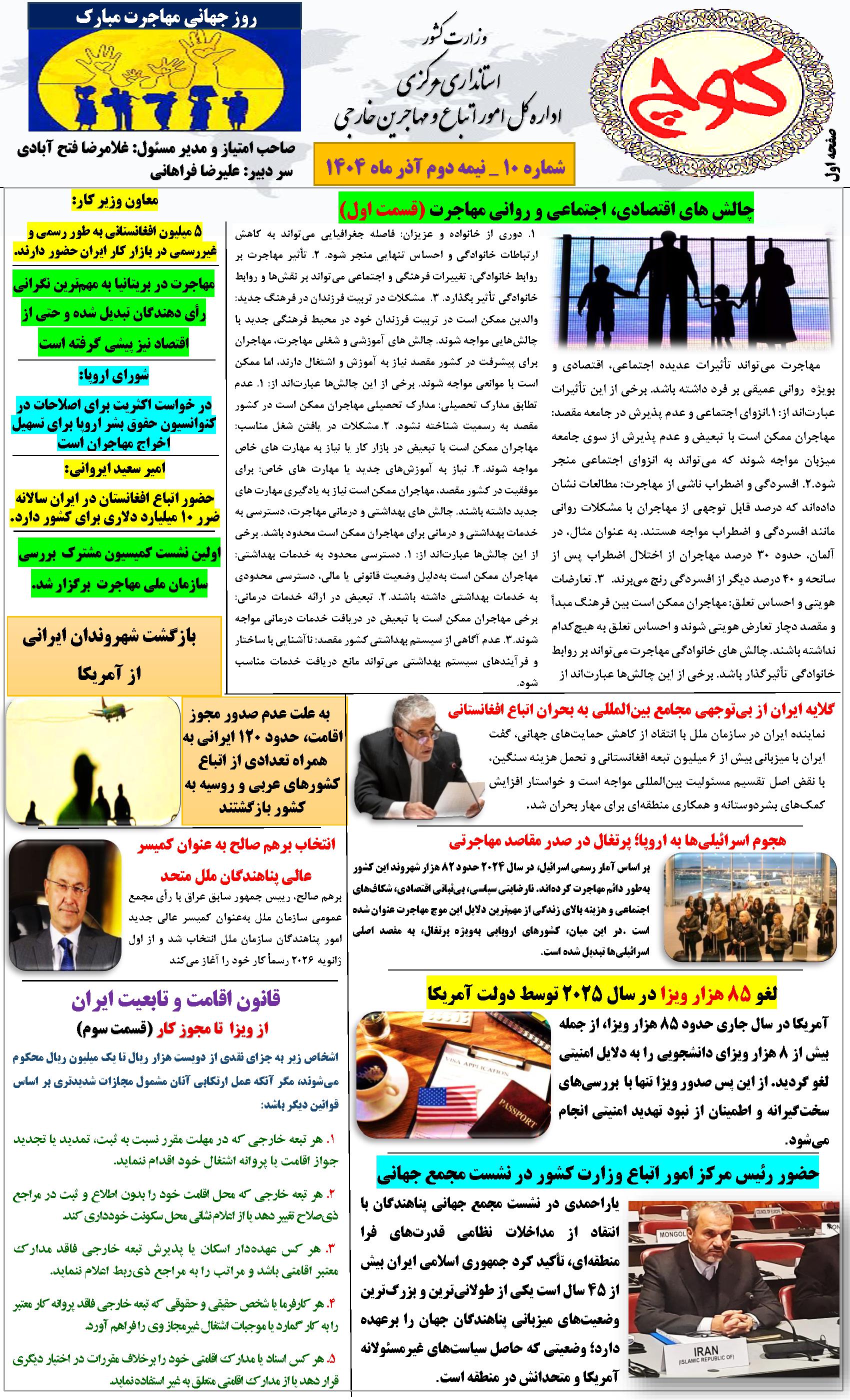 دهمین شماره نشریه کوچ ۰۳ دی ۱۴۰۴ | ۰۹:۲۱ کد : ۵۷۵۲۰ اطلاعیه ارسال به دیگران نام شما ایمیل شما ایمیل دریافتکننده ارسال انصراف تعداد بازدید:۱۳۳ دهممین شماره نشریه کوچ، توسط دفتر امور اتباع و مهاجرین خارجی استان مرکزی منتشر گردید.