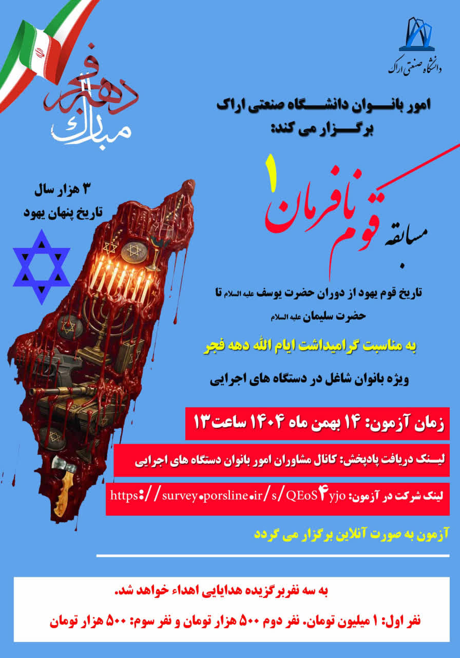 مسابقه قوم نافرمان ۰۸ بهمن ۱۴۰۴ | ۱۰:۳۹ کد : ۵۷۷۴۳ اطلاعیه ارسال به دیگران نام شما ایمیل شما ایمیل دریافتکننده ارسال انصراف تعداد بازدید:۲۳۳ برگزاری مسابقه قوم نافرمان، در ایام الله دهه فجر